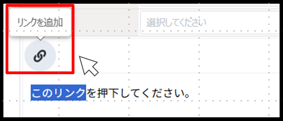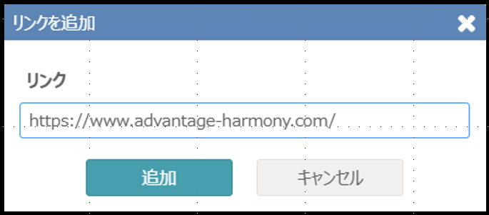 ▼アイコンを押下すると「リンクを追加」の子画面が表示されますので「追加」ボタンより設定が可能になります。