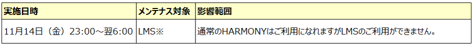 【重要】システムメンテナンスに伴うLMSサービスの一時停止のお知らせ(11月14日(金)23:00~翌6:00)