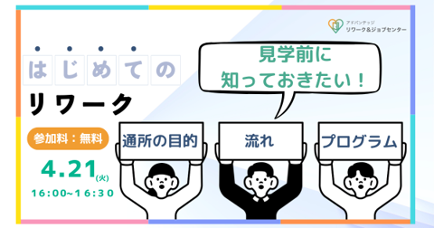 【個人向け・無料/2日程開催】リワーク説明オンラインセミナー